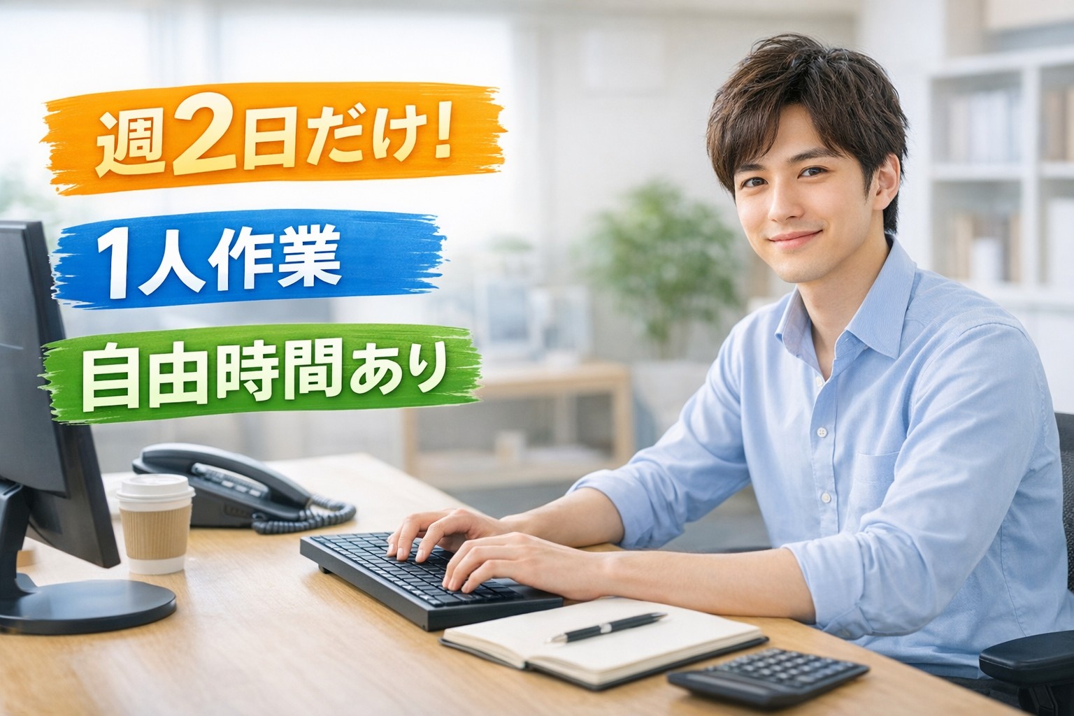 Wワークや副業希望のあなたに丁度いい週2勤務!