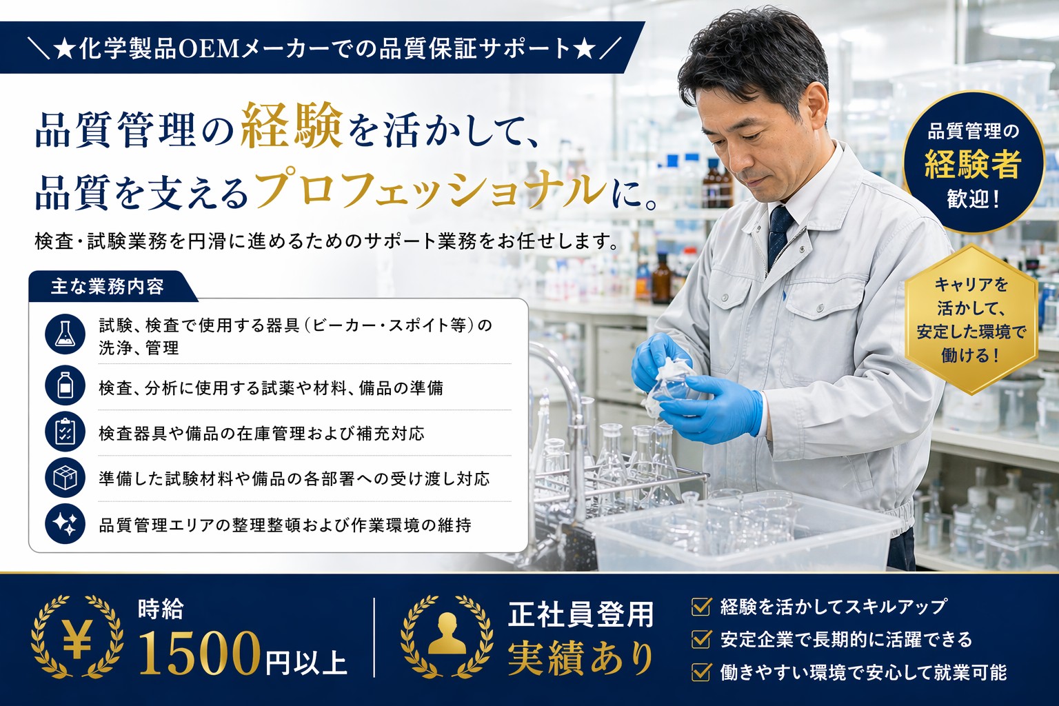 【経験・資格】【こんな働き方をしたい方に】 ・これまでの品質管理の経験を活かして貢献したい方 ・将来的には正社員として腰を据えて働きたい方 ・ライフワークバランスを大切にしたい方